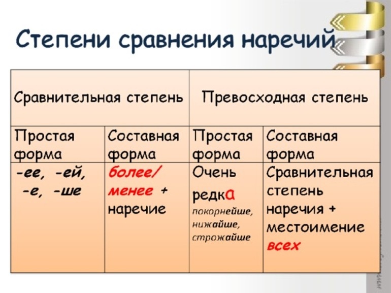 4. Составная сравнительная степень наречий образуется с помощью слов: